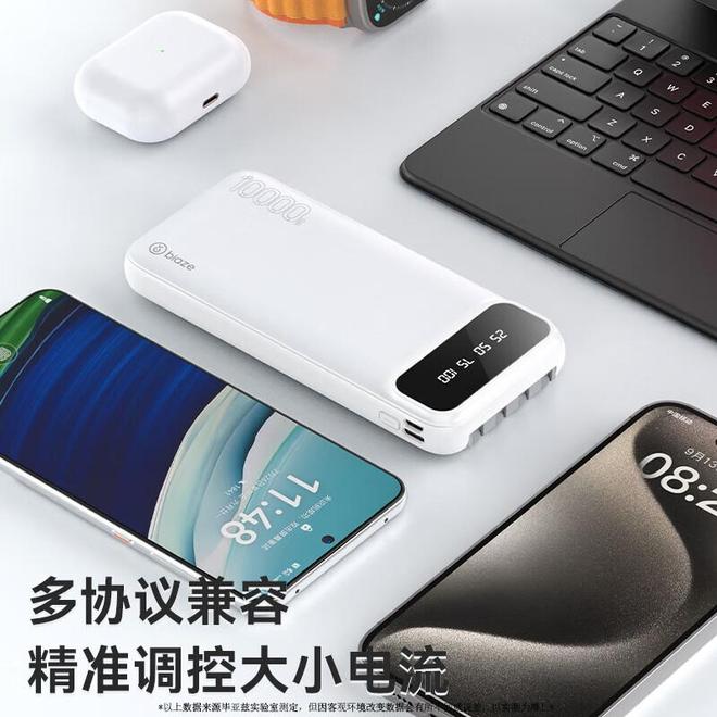 •安检无忧:3C认证电芯无需申报,过安检时不用再翻包证明容量•自愈线材:尼龙编织线次弯折,比普通线倍•智能防护:温度过高自动断电,放在羽绒服口袋里充电也不发烫•双向快充:自身充满仅需2.5小时,酒店退房前插上就能满电出发