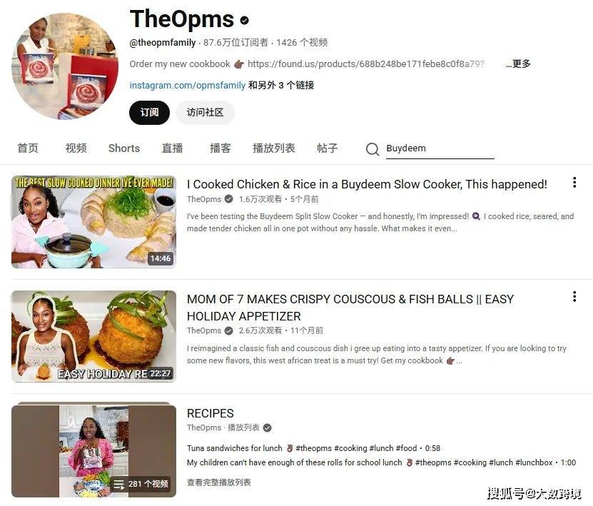 在YouTube上,北鼎选择与专业美食博主合作。拥有87.5万订阅者的美食博主TheOpms为其慢炖锅拍摄的评测视频,全面展示了产品的温度调节和菜单选择等功能。